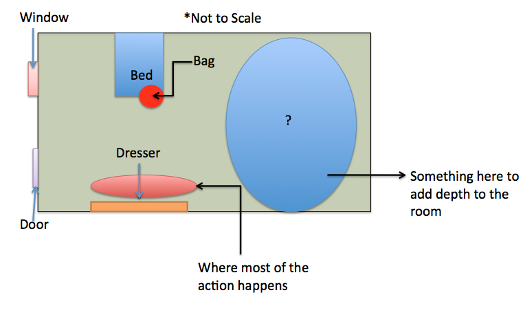 - Something yellow (flower vase, picture frame, ect.) for set dressing to put behind Sara in the bedroom scene