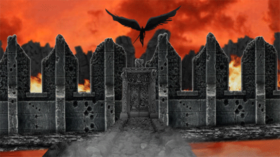 The second animation is a representation of the gateway into Dis. The door that seals the way for Dante is Auguste Rodin’s La Porte de l’Enfer. Above the doorway is a fallen angel, who guards it as described in the poem.